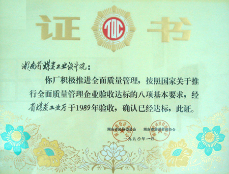 全面質(zhì)量管理合格證書(1989)