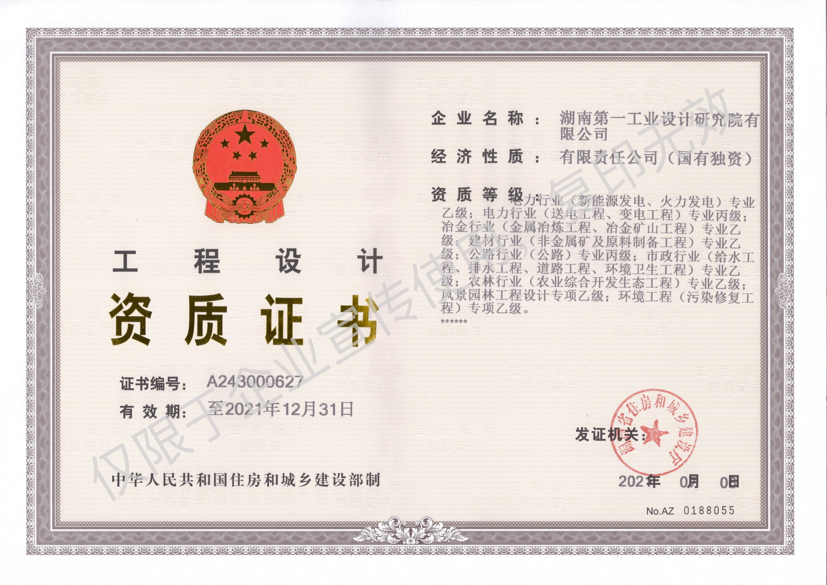 工程設(shè)計資質(zhì)證書